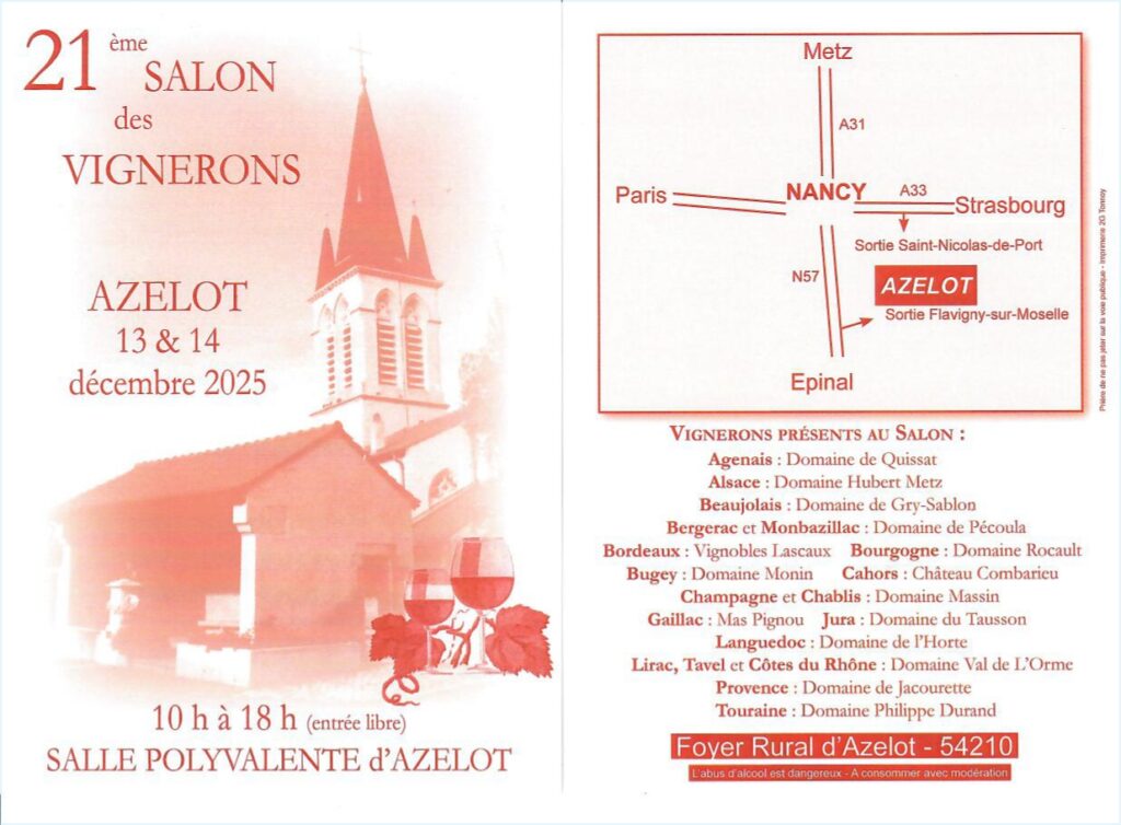 Nous serons ravis de vous retrouver près de Nancy à Azelot.